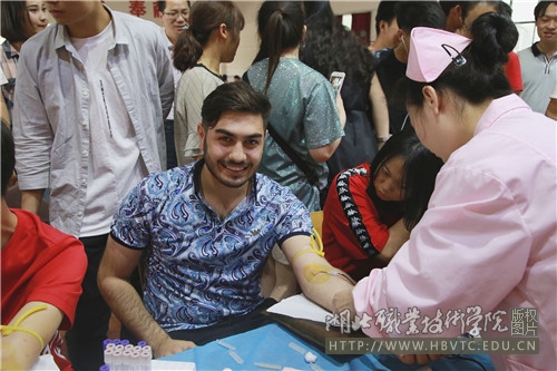 得知此次献血活动的消息,19岁的阿塞拜疆籍留学生毕目达(MURAD BILAOV)主动找到老师要求报名参加。在他就读的国际教育学院老师和同学们陪伴下,他完成了平生的第一次献血。问他是什么感受,他用刚刚学会的汉语说“很棒,我也可以帮助别人了”。这次献血活动不仅有效缓解了孝感市临床用血紧张局面,也充分体现了虎牙手机客户端大学生的责任担当意识。