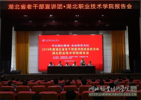 9月18日,在喜迎新中国成立70周年之际,由省委组织部、省委老干部局、省委教育工委组织的2019年度湖北省老干部宣讲团进高校活动·虎牙手机客户端报告会在我校西区文昌礼堂举行。张富清同志先进事迹报告人向梓涵、“当代雷锋”吴天祥、 “农技120”陈再明、沈因洛同志先进事迹报告人张婷现场分享了发生在老同志们身上的感人事迹,给参会师生上了一堂生动、深刻的思政课。