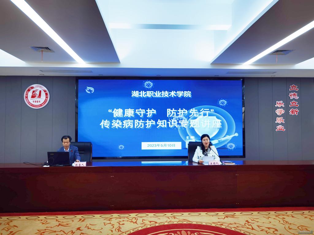(本网讯 王宇阳 王欣怡)5月10日下午,学校采取线上线下相结合的形式举行“健康守护、预防先行——传染病防护知识专题讲座”,全体辅导员、在校学生参加了专题讲座。主会场设在南校区图新楼601会议室,孝感市中心医院感染科刘胜勇主任受邀讲授,全校学生通过“湖小职”抖音平台聆听本场讲座。党委学生工作部部长魏俊桃主持讲座。
