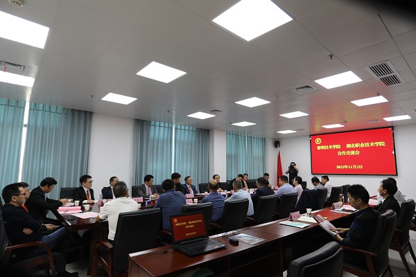 林明芳、郭沙签署了两校合作交流备忘录。台湾黎明技术学院许耀基、林明芳一行参观了我校建筑虚拟仿真实训中心、新媒体电商产教融合基地、网络安全人才培养基地。我校党政办公室、统战部、教务处、对外合作交流处、财经与旅游学院、机电工程学院、信息工程学院负责人等参加活动。