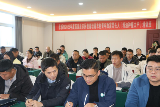 (本网讯 王菲 张进兵)11月14日-20日,孝感市2023年度高素质农民教育培育农村青年致富带头人培训班举行,来自县市区的50名粮油种植大户、青年致富带头人参加了培训学习。共青团湖北省委青少年发展与权益维护部三级调研员张义,共青团孝感市委书记刘勤,我校副校长杨立明,孝感市农业农村局科教科副科长严耀峰,我校建筑工程学院院长郭自灿,继续教育学院副院长汪向东等同志出席相关活动。