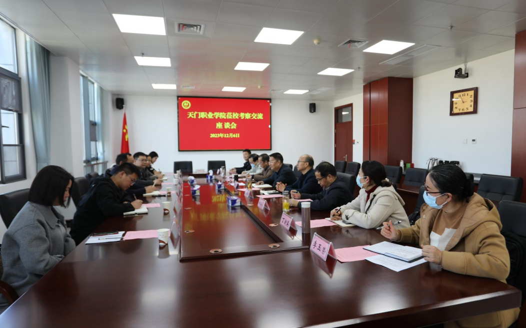 郭沙介绍了校情、学校高质量发展情况,副校长白梦清介绍了学校“双高计划”建设情况;天门职业学院校长熊安锋介绍了天门职院办学情况。两校相关部门进行了对口交流。