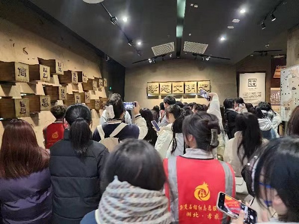 (本网讯 陈灏 余丽 吕国涛 吕曦怡 )12月10日,各族师生代表160多人专程来到孝感市文化中心,参观孝感市博物馆,在孝感市图书馆参观了孝感建市30周年经济社会发展成就展档案展,聆听了心理学博士,武汉理工大学学生发展教育与指导中心副主任孙灯勇教授所作的讲座。在历史与现实、文化与心理、成就与愿景中,感受绚烂文明的魅力、砥砺前行的初心、澴川奋进的脉搏,体悟有形有感有效铸牢中华民族共同体意识、各族群众交往交流交融的时代强音。