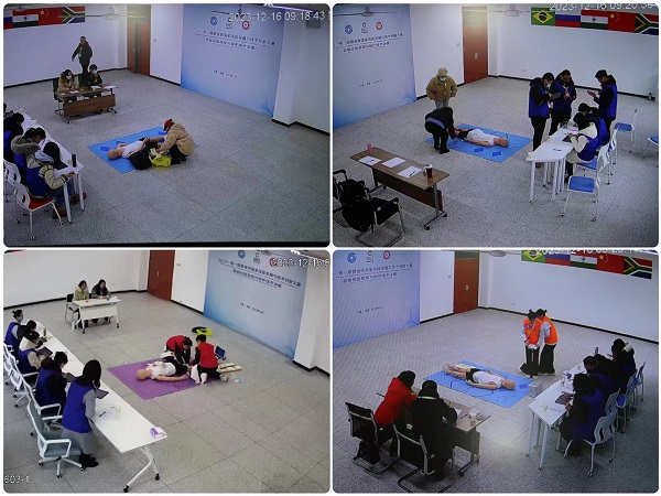 (本网讯 陈灏 李进军 龚洪浪 高杨 黄文军 谷潋 黄洪波 李颖)12月17日,2023一带一路暨金砖国家技能发展与技术创新大赛首届校园急救与救护技术决赛进行紧急救护实操模块三的比拼,选手分别用PPT图文讲解、动作示范等,展示急救知识的传播技巧。
