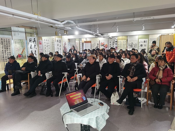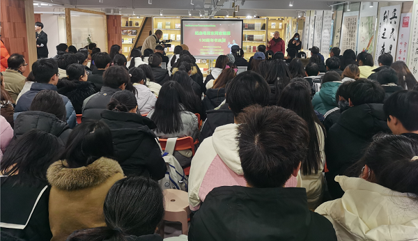 孝感市直老年书画研究会肖圣清作精彩书法讲座。孝感市直老年书画研究会会长祁建勋在接受孝感电视台记者采访时说,在毛泽东同志诞辰130周年之际,恰逢孝感市建市30周年,我们老同志走进湖北职院,与师生交流书画艺术,纪念伟人毛泽东同志,很有意义。湖北职院文化氛围很浓,立德树人成效显著,文化品牌效应彰显。程颖同学说,在湖北职院多彩文化空间中,我们接受洗礼,赓续红色基因,争做时代新人。
