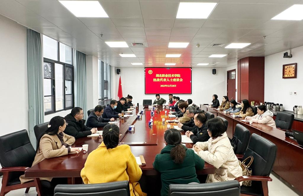 (本网讯 黄璐)12月28日下午,2023年湖北职院统战代表人士座谈会在图新楼1016会议室召开,校内各有关单位的人大代表、政协委员、各民主党派、无党派人士、知联会、侨联等成员代表及各族教师代表参加座谈会,校党委副书记王益贤出席并讲话。党政办公室、党委组织部(人事处)、党委统战部、教务处、科研处等单位负责人参加座谈会。党委宣传部(统战部)田寿永主持座谈会。