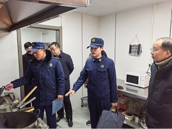 检查组一行人首先对学校各校区食堂、超市的消防安全情况进行检查。来到食堂,着重检查食堂的火源控制情况,查看明火操作台、燃气炉具是否符合规定,燃气灶是否安装熄火保护装置,室内是否安装燃气报警器、是否有独立的通风系统等;检查了食堂、超市内的消防设施是否完好,疏散通道是否畅通、是否有障碍物、是否设置了指示标识等。