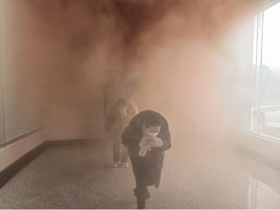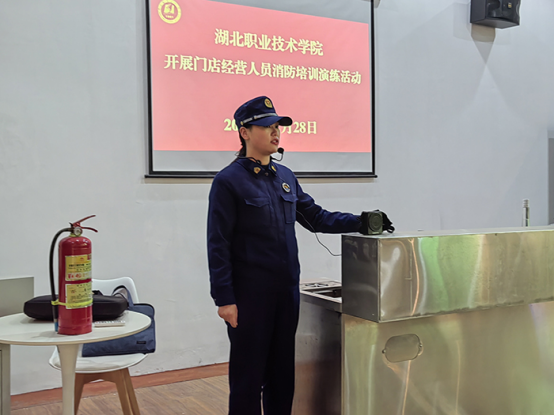 检查后,孝南区消防救援大队宣讲员孙芳对校内所有门店商户从业人员进行了消防培训、应急逃生和灭火实操活动。在培训环节,消防救援大队宣讲员孙芳从认识灭火器和怎样正确使用、如何扑灭初起火灾以及火场应急逃生要素等进行了详细的讲解;在应急逃生演练中,模拟会场失火、浓烟四起,大家都压低身子、捂住口鼻、朝着安全出口的方向有序疏散。