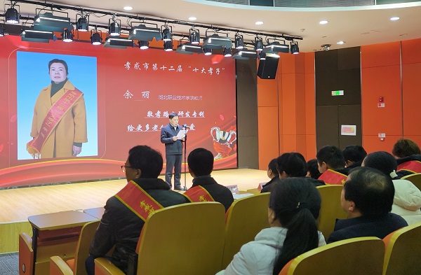在颁奖典礼上,湖北职院教师余丽等10名同志被授予第十二届孝感市“十大孝子”称号,孝感市社会福利院爱心护理院鲁娜等10名同志获颁第十二届孝感市“十大孝子”提名奖。