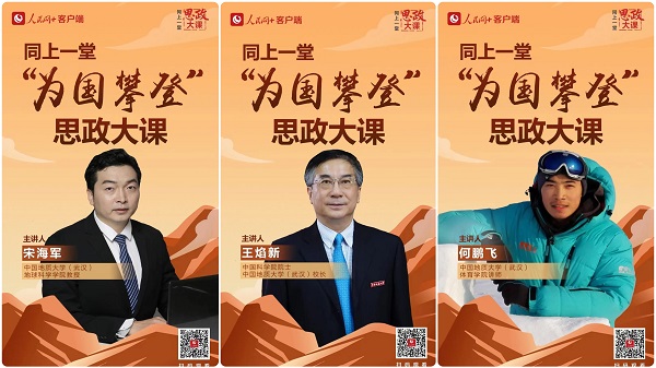 (本网讯 陈灏 王宇阳)2月26日晚20:00,人民网、中共湖北省委网信办、湖北省教育厅、中国地质大学(武汉)联合举办同上一堂“为国攀登”思政大课。“思政大课”围绕征服珠峰的一系列故事展开,中国科学院院士、中国地质大学(武汉)校长王焰新,中国地质大学(武汉)地球科学学院教授宋海军,中国地质大学(武汉)体育学院教师何鹏飞,用精炼的语言、亲身的经历,动情讲述“攀登者”们的故事。湖北职院万余名师生,在线收看了这堂精彩的思政大课,领悟“扎根中国、胸怀天下、勇攀高峰、追求卓越”的攀登精神。