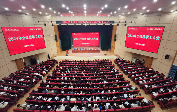 (本网讯 陈灏 唐熙隆)龙腾盛世写华章,踔厉奋发谱新篇。3月6日,全体教职工大会在南校区崇德礼堂召开。会议以习近平新时代中国特色社会主义思想为指导,认真贯彻落实2024年全国全省教育工作会议精神,总结2023年工作,部署2024年任务,组织动员全校上下加压奋进,乘势快上,扎实推进学校事业高质量发展。全体校领导出席会议,党委副书记、校长郭沙主持会议,党委书记郭国文作重要讲话。