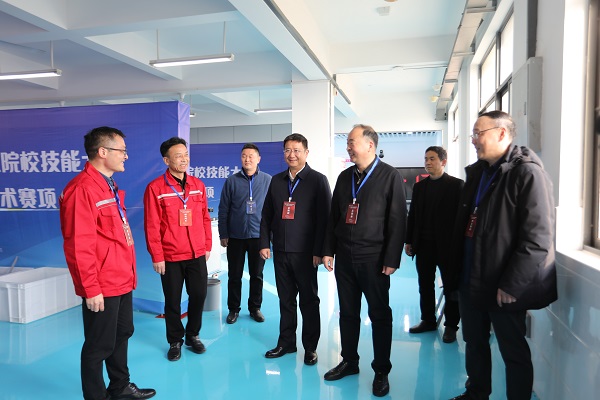(本网讯 陈灏)3月11日下午,校党委书记郭国文、校长郭沙、副校长胡昌杰一行,深入2024年“中银杯”湖北省职业院校技能大赛(高职组)机电一体化技术赛项比赛现场调研。教务处、机电工程学院相关同志陪同。