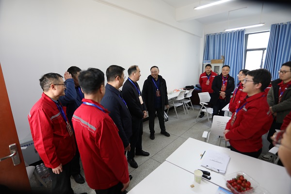 在南校区开物楼,校领导实地检查比赛场地、信息技术、设备运行、后勤保障等相关事宜,看望裁判员和选手代表,慰问大赛志愿者。赛项负责人、机电工程学院院长程胜文汇报了大赛开展情况。校领导对赛项筹备付出辛勤努力的各个工作组表示感谢,要求相关部门当好东道主,做好赛事服务,确保大赛承办工作有序推进。勉励选手以最佳的状态参加比赛,力争取得优异成绩。