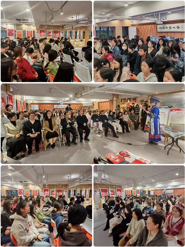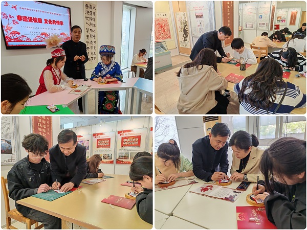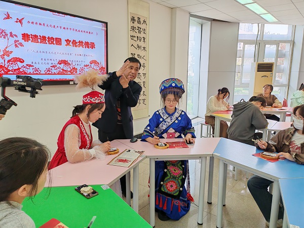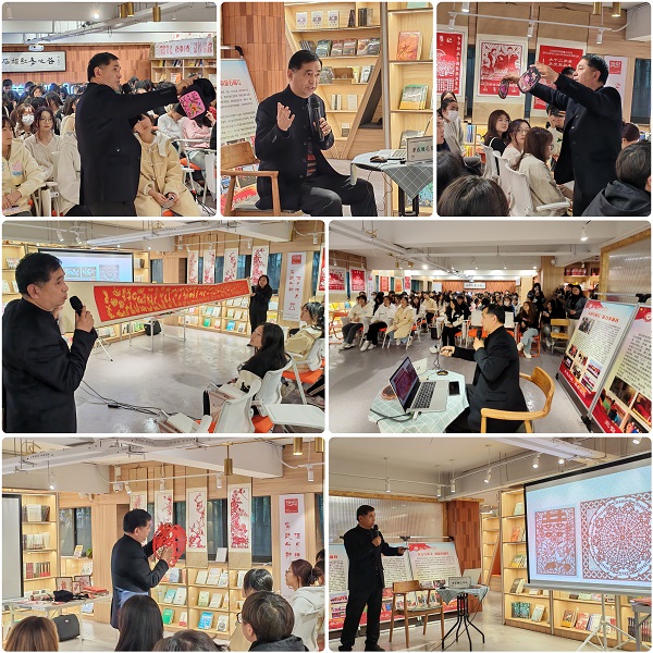 (本网讯 陈灏 余丽 熊元焕 王丽)3月23日,星期六,“非遗节”启动式和非遗沉浸式体验在“石榴红·孝廉谷”文化基地、文博馆孝文化传承与教育基地举行,省、市、区非遗传承人走进校园,与大学生一道开展“人类非物质文化遗产代表作名录”——孝感雕花剪纸“大师授课”和“剪纸体验”活动,推进“非遗进校园 文化共传承”质量提升工程,有形有感有效铸牢中华民族共同体意识,建设共有精神家园,为学校“创高升本”和建设中华孝文化名城贡献非遗力量。