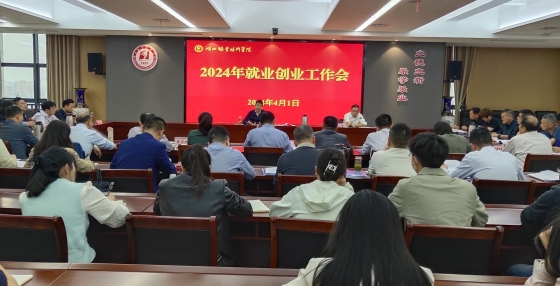(本网讯 艾欢)为落实全国、全省普通高等学校就业创业工作会议精神,全面总结学校2023年就业创业工作,部署2024年就业创业工作,4月1日,学校召开2024年就业创业工作会。各二级学院党政负责人、学工副院长、全体毕业年级辅导员、招生与就业创业指导处相关工作人员参加会议,校长郭沙出席会议并讲话,会议由副校长梅重主持。