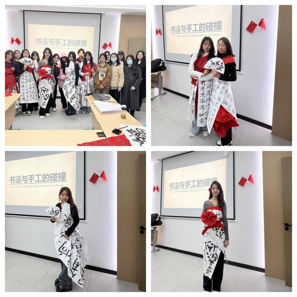 一场别开生面的“手工书法服装秀”在社区举行。同学们运用毛笔、墨水等传统书法工具,用自己的双手将传统书法艺术与现代服装设计巧妙结合,呈现了一场视觉与文化的盛宴,将传统书法艺术的魅力展现得淋漓尽致。