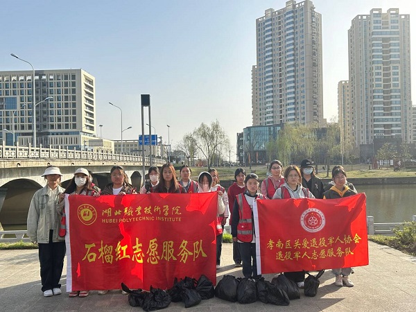 打造宜居孝感,扮靓美好家园。荆楚石榴红志愿服务队坚持每周开展澴河清洁活动。“一条秀美的澴河,连接湖北职院东区西区、南区”。荆楚石榴红志愿服务队王雅楠、殷思哲等同学说,每周,我们用脚步丈量澴河之美,在风景如画的澴河之畔,收获劳动和志愿服务的快乐。