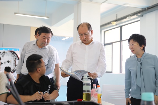 在机电工程学院,胡玖明先后深入机器人实训室、新能源汽车实训室、数控实训中心,边走边看,边听边问,了解产教融合、校企合作等情况。他强调,要把服务地方产业发展、培育本土工匠作为重要方向,深化市域产教联合体建设,加快建设一支知识型、技能型、创新型产业工人大军。