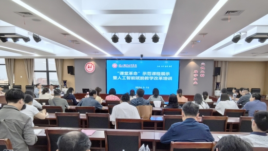 (本网讯 曾俊平 )5月15日晚,“课堂革命”示范课程展示暨人工智能赋能教学改革培训活动在南区图新大楼601室召开,副校长胡昌杰出席,教务处处长黄享苟主持,各教学单位专业带头人、教研室主任、“课堂革命”示范课负责人、“人工智能+”课程负责人以及教务处人员近110人参加活动。