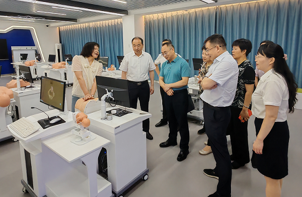 赵军章一行参观了我校铸牢中华民族共同体意识教育、民族团结进步创建工作、道德群星、石榴红·孝廉谷文化基地成果等展览,以及护理虚拟仿真实训基地等,与各族师生代表座谈。赵军章对我校高质量发展以及铸牢中华民族共同体意识教育、民族团结进步创建等工作予以高度评价。