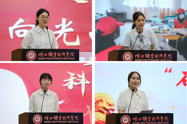 医学院布依族学生林懿婷同学讲述了她传递榜样精神、践行榜样力量的故事。她将“时代楷模”黄文秀的故事从家乡广西百色带到湖北孝感,将文秀精神传递给更多的人,砥砺各族学子汲取奋进力量。她说,榜样的力量如星星之火,在各族学子的接力下,必将汇聚成强国建设、民族复兴的磅礴力量。