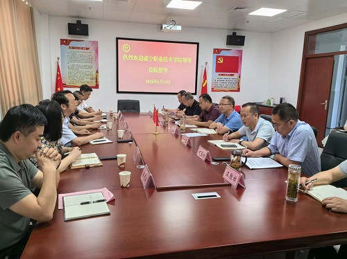 (本网讯 高佩)6月13日下午,咸宁职业技术学院党委委员、总会计师胡绍山,人事处、财务处、总务处负责人,资产经营公司董事长及副总经理一行莅临学校考察交流。学校党委委员、副校长袁胜华,组织人事处、党委学工部、计划财务处、校园建设与后勤保障处、资产管理处负责人及相关人员接待咸宁职业技术学院考察一行,座谈会在图新楼801会议室举行。