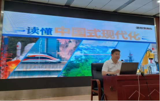 校长郭沙围绕中国式现代化的历史逻辑、理论逻辑和实践逻辑进行讲授。他指出,要坚定马克思主义信仰,运用马克思主义基本原理准确理解中国式现代化,牢牢把握中国式现代化是实现中华民族伟大复兴的根本之路,深刻感悟中国青年是探索中国式现代化历史进程中的先锋力量,以实际行动践行“强国有我”的青春誓言。