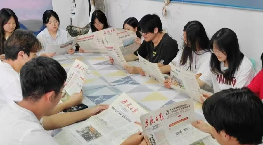 (本网讯 陈灏)悦读党报,阅来阅好。近日,校融媒体中心协同相关社团、班级开展阅读《人民日报》《光明日报》《中国教育报》《湖北日报》《孝感日报》等活动,了解时政,学习理论,坚定方向,站稳立场,掌握方法,提升素养,助力党的创新理论武装与思政课建设同步推进、“双向奔赴”,进一步推进大思政课和思政工作走深走实。