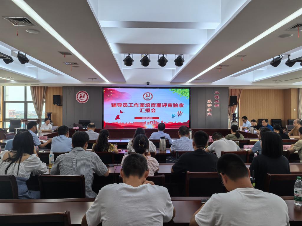 (本网讯 王宇阳 王欣怡)7月8日下午,学校首批辅导员工作室培育期验收评审汇报会在南校区图新楼601会议室举行,副校长梅重出席会议,党委宣传部、教务处、科研处、马克思主义学院、职业教育研究中心负责人担任评委,各教学院分管学生工作负责人、全体专职辅导员和兼职辅导员代表、党委学生工作部及团委全体人员参加了汇报会。会议由党委学生工作部部长魏俊桃主持。