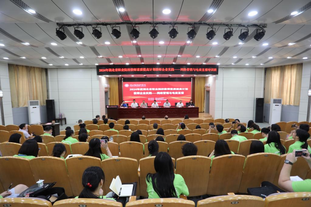(本网讯 文:李蓓蕾 图:唐熙隆) 7月16日上午,由湖北省教育厅主办、我校承办的2024年湖北省职业院校教师素质提高计划教师企业实践(网络营销与电商直播)培训班在学校西区文博馆学术报告厅举行开班仪式。学校党委副书记、校长郭沙、孝感市教育局党组成员、副局长丁萌、广州市福思特科技有限公司常务副总麦全发、学校党委委员、副校长杨立明、财经与旅游学院院长徐斌华、继续教育学院院长丁浙英、湖北冰点文化传播有限公司总经理董俊出席。来自全国职院校学员60人及财经与旅游学院教师代表参加了开班仪式,开班仪式由副校长杨立明主持。