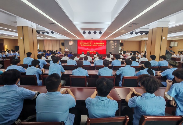 学校党委书记郭国文讲话。他强调,一直以来,湖北职院始终坚持以服务孝感经济社会发展为己任,扎根孝感大地,坚守类型定位,坚持“学校-企业-社会”多元化开放式办学,实施“专业与职业一体,学业与岗位融通”,不断深化产教融合、校企合作,培养了一批又一批高素质技术技能人才,为孝感经济社会高质量发展贡献了“湖职”力量。孝感楚能新能源产业学院的成立,是学校推进产教融合、服务地方发展的又一具体行动,必将有力促进教育链、人才链与产业链、创新链的有机衔接,赋能新质生产力发展。要实实在在双向奔赴、相融相通,实实在在协同育人、互利共赢,实实在在创新实干、打造品牌,把孝感楚能新能源产业学院做出特色、做出品牌,为现代职业教育体系建设改革和孝感经济社会高质量发展作出新的更大贡献。