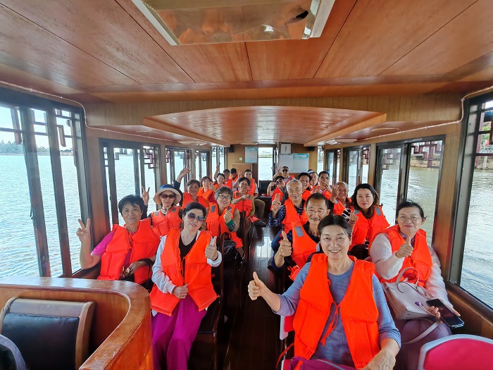 随后,队伍转场至湖北天紫湖文化旅游区,开启了愉快的观光之旅,秋天的天紫湖湖水波光粼粼,稻谷金黄,鸟语花香,硕果累累,呈现出美丽动人的画卷。大家或漫步于湖畔小道,感受秋风的轻抚与落叶的静美;或乘坐游船悠游于碧波之上,尽享湖光山色的无限风光。此外,景区内还设置了多项互动体验项目,让老同志们在欢声笑语中放松身心,享受退休生活的悠闲与惬意。