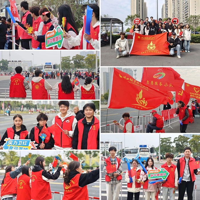 10月27日凌晨4点30分,志愿者们全部集结完毕,5点30分准时到达指定服务区域,参与保障工作。我校师生志愿者在不同的服务点,分工协作,提供补给物资、赛道指引,负责赛道沿途医疗保障、赛后拉伸,负责现场氛围营造、嘉宾接待,协助直播等,为20000名运动健儿们“护航”加油。