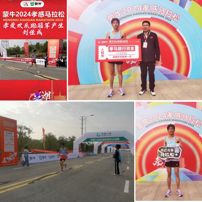 在孝爱欢乐跑中,欢乐跑个人竞技组第一名,系我校口腔医学专业2024届毕业生刘佳成。在2023年孝感马拉松的健康跑中,他也获得了第一名的好成绩。连续两年夺冠,不仅为他个人赢得了荣誉,更为湖北职院增添了光彩。