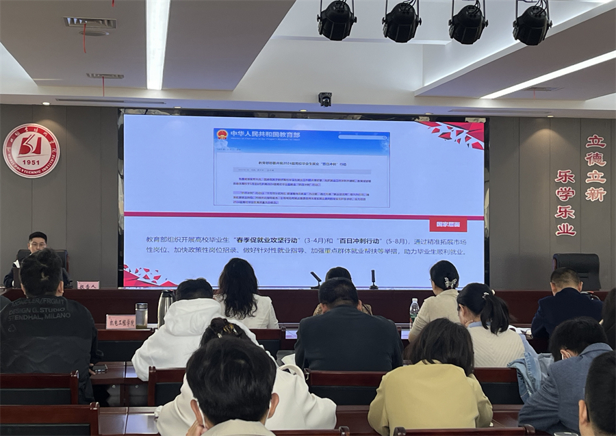 在思想引领环节,机电工程学院辅导员周鹤龄以“政策导航明方向,师生共筑梦飞翔”为题,运用详实数据和实例,从高校毕业生的就业形势分析、高校毕业生的就业政策解读、专科毕业生就业的常见渠道等方面,进行了深入细致的分析。