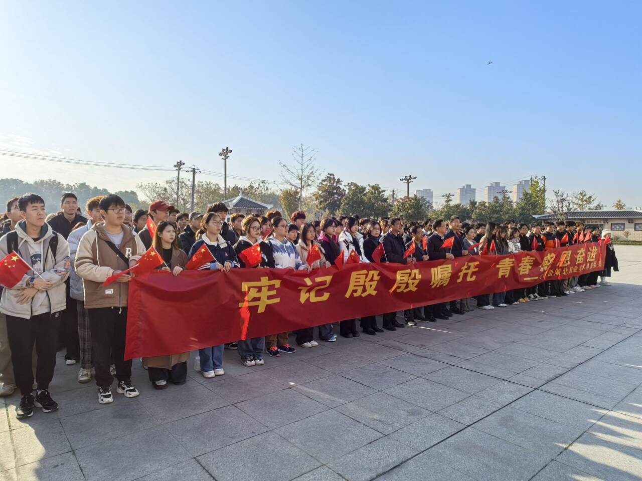 (本网讯 卢雅雪 冷玖玲)为深入学习贯彻习近平总书记考察湖北重要讲话精神,校团委组织两千余学子分批次赴云梦县博物馆开展“牢记殷殷嘱托,青春感恩奋进”主题团日示范活动。11月30日上午,团孝感市委副书记陈志明,学校党委委员、副校长梅重,团云梦县委负责人,我校党委宣传部、党委统战部、团委负责人,第九期青马工程培训班学员和团员青年们,率先前往云梦县博物馆。迎着和煦的朝阳,在馆前齐唱国歌、重温入团誓词,并齐呼响亮的青春誓言:“请党放心,强校有我!请党放心,强市有我!请党放心,强国有我!”这不仅是对党的深情歌颂,更是我校学子心中坚定信念的生动体现。