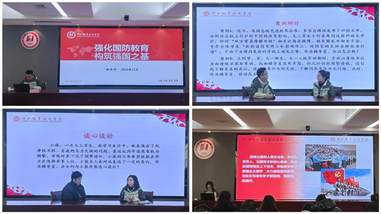 辅导员、学生工作副院长(副书记)、学工部负责人分别从班级、二级学院、职能部门三个层面,围绕如何加强和改进学生国防教育工作进行了深入探讨和交流。