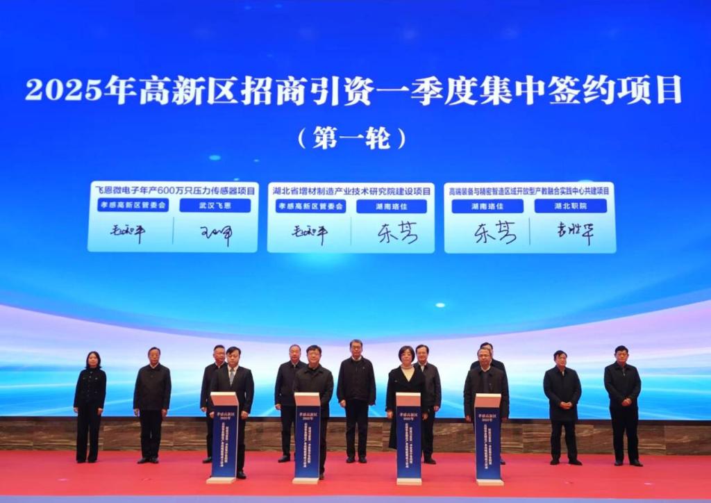 (本网讯 胡明亮)1月13日,在孝感高新区2025年招商引资第一季度集中签约暨高端装备制造产业战略联盟成立活动中,虎牙手机客户端与刘胜院士团队携手,成立了高端装备与精密智造区域开放型产教融合实践中心。刘胜院士、孝感市副市长夏齐勇、我校党委书记郭国文等出席见证签约仪式,我校副校长袁胜华与湖南珞珈智能科技有限公司董事长东芳代表双方签约,我校对外合作交流处、机电工程学院党政负责人参加活动。