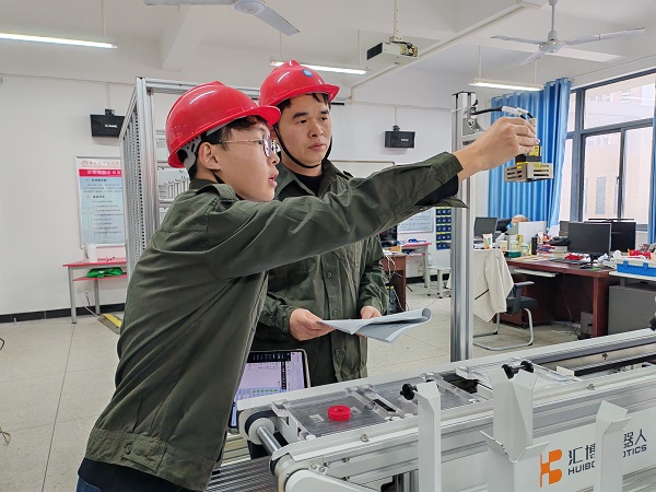 在开物楼9B603实训室备赛现场,针对视觉相机检测环节,指导老师桂宏凡博士结合赛项的指导和执裁经验,提醒董世业同学注意”光照条件对检测精度的影响”。桂宏凡博士不仅关注技术细节,也注重学生心理调适。
