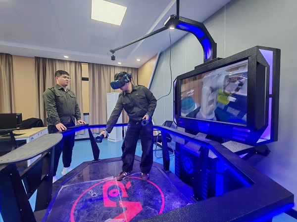 在虚拟现实(VR)训练室内,赵博宇同学操控着电脑,荣力聪同学佩戴着VR头盔,身临其境地进行工业机器人的机械臂拆装练习。随着VR的实时指导,他们通过手柄与虚拟界面互动,能准确地看到机械臂的3D模型和各个部件,轻松地模拟拆卸和组装,在安全的虚拟环境中熟悉操作技巧,为比赛的实际操作做好准备。各个备赛室里,计时器的滴答声与轻柔的指令交织一起,构成了一曲备赛交响乐,激励着每一个学子向着更高的目标迈进。