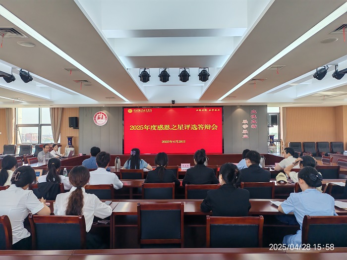 (本网讯 陈灏 喻琳)4月28日,在南校区图新大楼601会议室举行学校2025年度感恩之星评选答辩会。党政办公会、党委宣传部、党委学生工作部、工会办公室、图书档案馆等部门同志担任评委,各教学院相关辅导员观摩答辩会。
