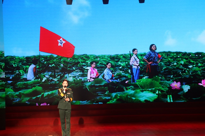 (本网讯 陈灏 )6月13日晚,湖北省军区“当那一天来临”红色音乐党课在我校崇德礼堂举行,“声”入人心,“燃”爆全场,好评如潮。省委常委、省军区司令员郦斌,孝感市人民政府市长吴庆华,孝感市委常委、组织部长杭莺,孝感市委常委、孝感军分区司令员曾凡笋,孝感军分区政治委员刘刚,我校党委书记郭国文、校长郭沙等出席活动。湖北省军区学习贯彻习近平新时代中国特色社会主义思想理论培训全体参训学员、我校师生代表近1000人共享“大思政课”,赓续红色基因,奋进支点建设。