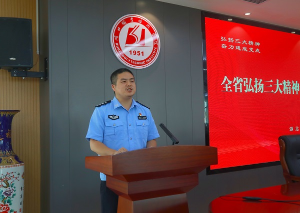 为弘扬大别山精神、抗洪精神、抗疫精神,传承和赓续红色血脉,把三大精神转化为全省党员干部加快推进支点建设的强大精神动力,根据省委要求,省委宣传部、省委讲师团组建巡回宣讲小分队,面向全省基层干部群众开展弘扬三大精神宣讲。我校各党总支、直属党支部书记、各支部宣传委员,马克思主义学院教师代表,暑期参加“三下乡”、志愿服务学生代表等共上这堂精彩的“大思政课”,在传承红色血脉中将三大精神转化为加快推进支点建设的强大精神动力。