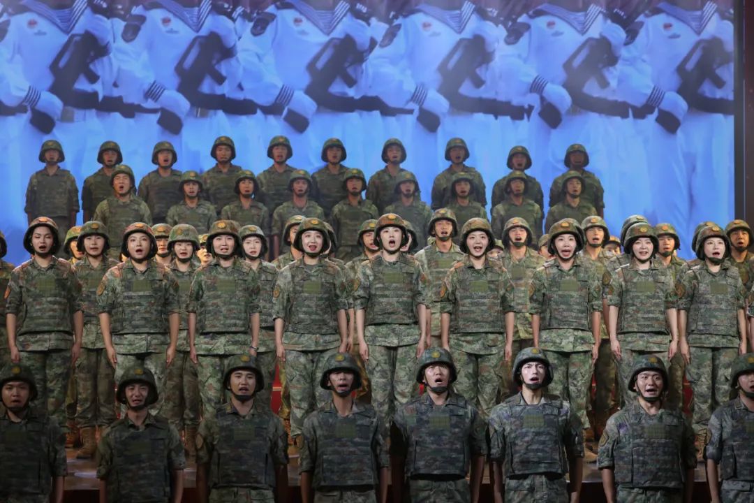 歌曲的演进,是我军发展壮大的一个缩影。我们仰望历史星河,从《国际歌》的伟大觉醒,到《八路军进行曲》的使命感召;从《三大纪律八项注意》的铁血军魂,到《洪湖水浪打浪》的胜战之本;从《中国人民志愿军战歌》的气吞山河到《歌唱祖国》的深情礼赞,从《当那一天来临》的铮铮誓言到《为了谁》的义无反顾——每一段旋律都是时代的烙印,每一句歌词都是历史的回响,每一个音符都是强军的召唤。