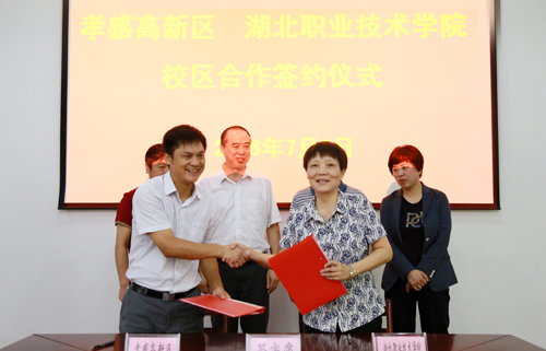 为了创新人才培养模式,不断增强服务区域经济社会发展能力,近日,学校与孝感高新区举行了校地合作签字仪式。学校党委书记蔡诗红、校长朱虹、副校长李佳圣,孝感高新区工委副书记、管委会常务副主任贺卫东,工委委员、管委会副主任汪望勋,工委委员、管委会副主任余小丽等出席签字仪式,学校相关职能部门、二级教学院及孝感高新区相关部门负责人等参加此次活动。仪式由学校校长朱虹主持。