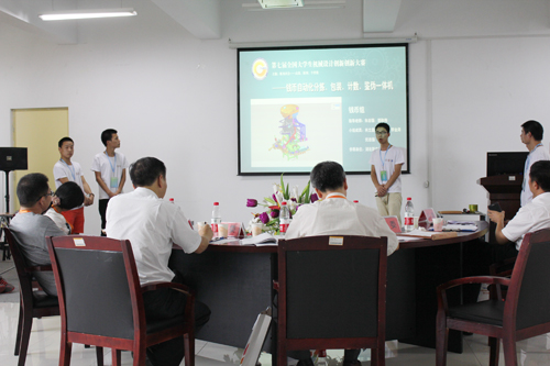 流金七月,捷报频传。7月26日—29日,“齐鲁交通发展杯” 第七届全国大学生机械创新设计大赛决赛在济南举行。经过审阅设计资料、观摩实物演示和进行作品答辩等程序,由机电工程学院朱志强、郭和伟老师指导,肖立昌、黄轩、李金涛、倪志强、王新胜学生组队参与设计的“钱币自动化分拣包装计数辨伪一体机”因创新性、新颖性、实用性突出,且科技含量高、功能强大、性价比高等绝对优势获得评审团一致好评,免复评直接进入决赛而荣获一等奖。校长朱虹亲临现场指导大赛,并为参赛选手鼓劲加油。
