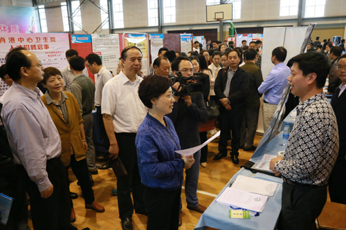 孝感市政府副市长王芳与参会单位代表进行了深入交流。在来自本地区革命老区——大悟的相关单位的展台前,热切询问用人单位对学校培养学生的意见和建议,并叮嘱求职学生要珍惜就业机会,扎根湖北、扎根孝感、为地方经济建设作贡献。