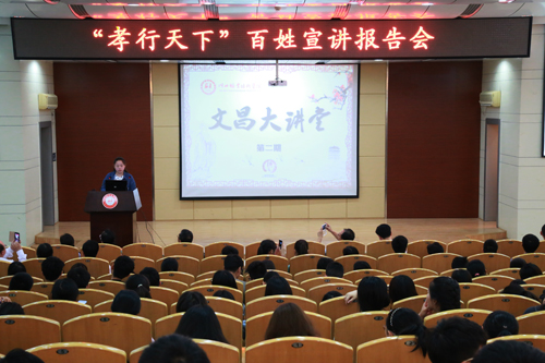 为进一步弘扬中华孝文化,培育和践行社会主义核心价值观,深化“两学一做”学习教育,加强师生思想道德教育,5月24日,孝感市“孝行天下”百姓宣讲团应邀走进我校,为我校师生带来了丰富的精神大餐。学校党委副书记张勇,孝感市委宣传部讲师团、理论科相关负责人等出席了报告会。学校300多名师生代表认真聆听了报告。