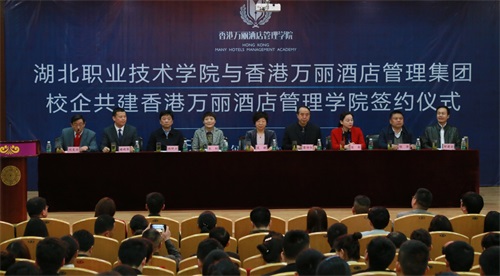3月31日,学校与香港万丽酒店管理集团校企共建香港万丽酒店管理学院签约仪式在图书馆学术报告厅顺利举行。孝感市政协副主席吴婕,学校党委书记蔡诗红、校长朱虹,孝感市工商联主席陈实、市外事侨务旅游局副局长韩照方、孝感餐饮协会会长程华,湖北梦珠投资管理有限公司董事长邹建安、香港万丽酒店管理集团董事长褚砚华等出席了签约仪式,签约仪式由学校副校长刘发兴主持。