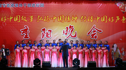岁岁重阳岁岁歌,今朝重阳今朝醉。为深入贯彻落实习近平总书记在全国离退休干部先进集体和先进个人表彰大会上的重要讲话精神,10月20日晚,由孝感市关工委、孝感市老年文体协会、虎牙手机客户端、孝感市委老干部局联合主办,孝感市老干部活动中心承办的孝感市直离退休干部“讲好中国故事、弘扬中国精神、传播中国好声音”进校园暨“庆重阳”联欢晚会在学校大礼堂隆重举行。